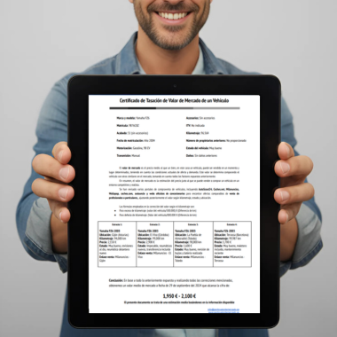 Emitimos un certificado que refleja el valor medio del mercado para tu vehículo, teniendo en cuenta su estado, kilometraje y todos los factores clave para realizar una tasación real.